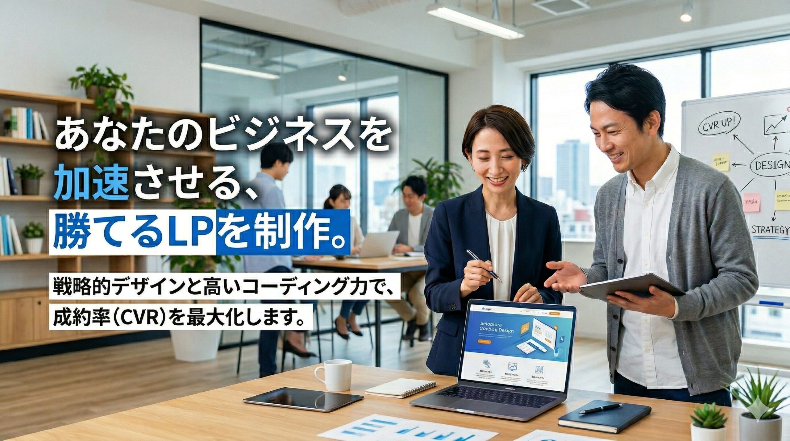 この作品では、ピーク時の業務過多に悩む飲食店オーナーをターゲットに設定。 「機能の説明」に終始せず、「導入後の売上向上」という未来を直感的に感じさせるビジュアル設計を行いました。特に、文字の可読性を高めるための写真のフェード加工や、行動心理に基づいたマイクロコピーの配置にこだわり、CV(成約)を最大化させる構成を目指しました。