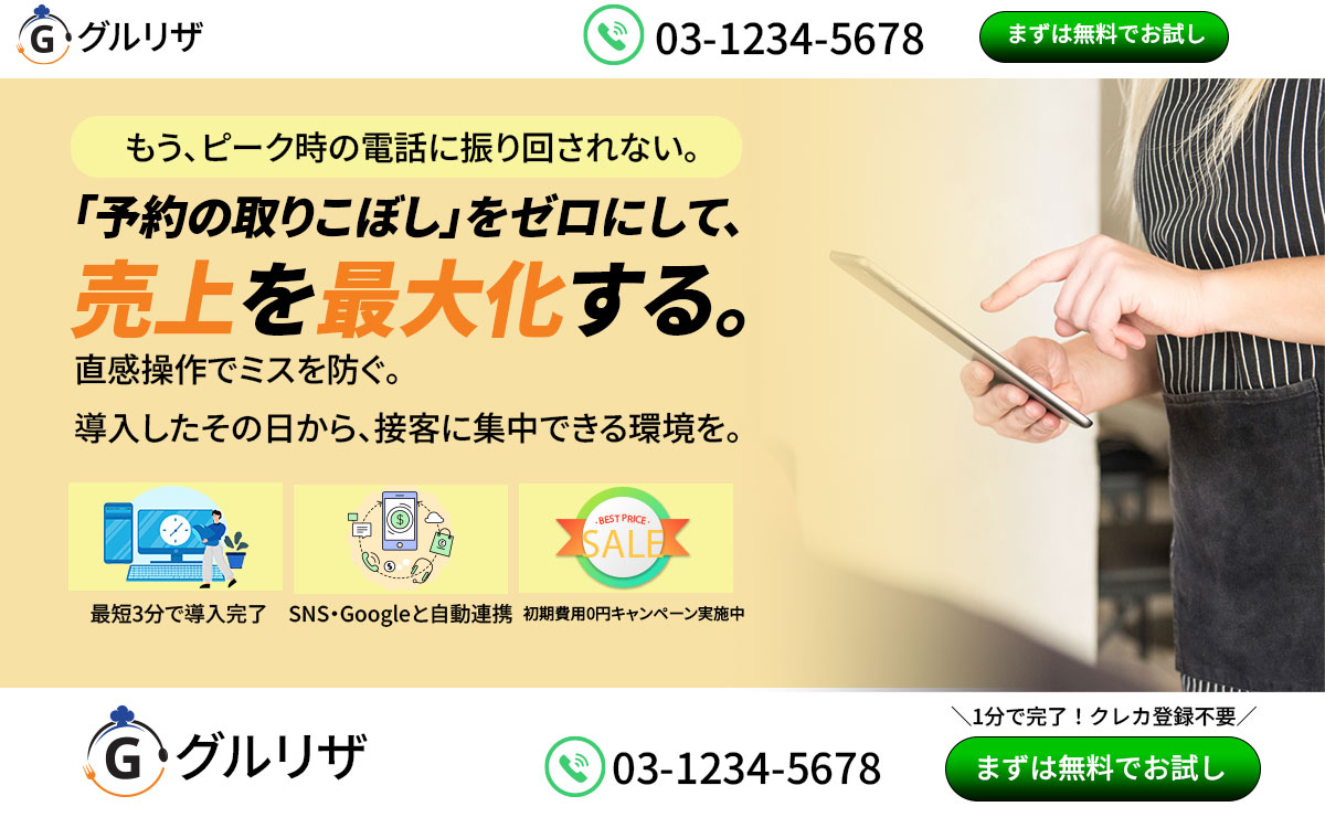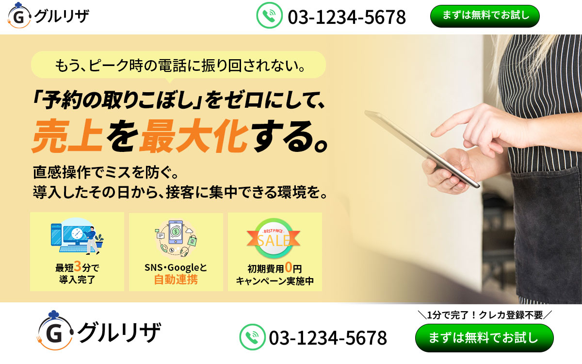 【店舗名・サービス名】 次世代型 飲食店予約管理システム『グルリザ』